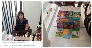 Όπως έγραψε το μικρό κορίτσι αποφάσισε να στήσει bazaar με βιβλία που δεν θέλει στην είσοδο της πολυκατοικίας της.