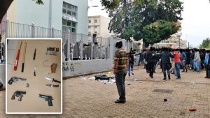 Την Τρίτη 28/09, 30 περίπου άτομα με κουκούλες και καλυμμένα τα πρόσωπά τους, φέροντας πέτρες, λοστούς, μαχαίρια, πυρσούς και άλλα αντικείμενα βγήκαν μέσα από το χώρο των σχολείων και επιτέθηκαν προς το μέρος των φοιτητών/τριών που ήταν έξω από τον αύλειο χώρο του σχολείου, μοιράζοντας ανακοινώσεις των Συλλόγων τους για την Ελάχιστη Βάση Εισαγωγής και την Τράπεζα Θεμάτων. Η ίδια ομάδα προκάλεσε πυρκαγιά και στο χώρο του κτιρίου και κατέστρεψε αυτοκίνητα εκπαιδευτικών, οι οποίοι/ες δέχθηκαν και προπηλακισμούς.