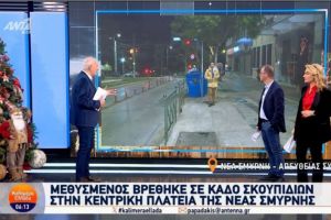 Τον μεθυσμένο βρήκαν στην πλατεία της Νέας Σμύρνης υπάλληλοι καθαριότητας κατά τη διάρκεια συγκομιδής απορριμμάτων.