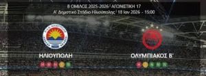 ΣΗΜΕΡΑ, ΚΥΡΙΑΚΗ 18.01.2026 ΚΑΙ ΩΡΑ 03.00 Μ.Μ. Η ΟΜΑΔΑ ΤΗΣ ΗΛΙΟΥΠΟΛΗΣ ΥΠΟΔΕΧΤΗΚΕ ΤΟΝ ΟΛΥΜΠΙΑΚΟ Β. ΣΤΑ ΠΛΑΙΣΙΑ ΤΗΣ 17ης ΑΓΩΝΙΣΤΙΚΗΣ ΤΗΣ SUPER LEAGUE 2.