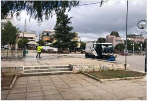 Η ομάδα καθαριότητας του Δήμου μας με οχήματα, σαρώνει την πόλη καθημερινά, για να περιορίσουμε τη διασπορά και να προστατεύσουμε όσο το δυνατόν περισσότερο τη Δημόσια Υγεία.