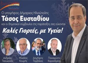 Οι ευχές της δημοτικής παράταξης ''Ηλιούπολη Πάμε Μπροστά'' για τις γιορτές Εντός των τειχών 23 Δεκεμβρίου 2022 Χρόνια πολλά σε όλους σας & να περάσετε όμορφα. Καλά Χριστούγεννα!!Τάσος Ευσταθίου Επικεφαλής δημοτικής παράταξης "Ηλιούπολη Πάμε Μπροστά" Τάσος Ευσταθίου "Ηλιούπολη Πάμε Μπροστά" ilioupoli ευχές Ηλιούπολη για όλους Ηλιούπολη Προβλήθηκε 614 φορές Δείτε Επίσης: Εντός των τειχών Δείτε τα Όλα Χειροπέδες σε έναν 39χρονο που χτυπούσε καταστήματα στα νότια προάστια 20 Μαρτίου 2026 Μαζί του συνελήφθη και μια 46χρονη. Παναργειακός - Ηλιούπολη (6η αγωνιστική - play outs) 19 Μαρτίου 2026 Σάββατο 21.03.2026 Ειδικό σχολείο -''H έκθεση της Διεύθυνσης Υγειονομικού Ελέγχου και Περιβαλλοντικής Υγιεινής της Περιφέρειας Αττικής'' 17 Μαρτίου 2026 Η έκθεση της Διεύθυνσης Υγειονομικού Ελέγχου της Περιφέρειας ζητά την άμεση αποκατάσταση των φθορών για την προστασία της υγείας μαθητών, προσωπικού και διδασκόντων. ΠΑΣΟΚ Ηλιούπολης - Οι 22 εκλεγόμενοι σύνεδροι. 16 Μαρτίου 2026 Ο κατάλογος των τελικά είκοσι δύο (22) εκλεγόμενων συνέδρων με τους σταυρούς που έλαβαν. Ισοπαλία για τον ΧΑΡΑΥΓΙΑΚΟ και τον ΦΩΣΤΗΡΑ ΗΛΙΟΥΠΟΛΗΣ 13 Μαρτίου 2026 ΚΥΡΙΑΚΗ 15.03.2026 ΚΑΙ ΩΡΑ 03.30 Μ.Μ. Ήττα για την ΗΛΙΟΥΠΟΛΗ ''5η αγωνιστική'' - Super League 2 (play out) 13 Μαρτίου 2026 Κυριακή 15.03.2026 Νίκη για την ΔΙΑΝΑ 13 Μαρτίου 2026 ΣΔΑΒΒΑΤΟ 14.03.2026 ΚΑΙ ΩΡΑ 03.30 Μ.Μ. ΑΙΓΑΛΕΩ - ΗΛΙΟΥΠΟΛΗ ''5η αγωνιστική'' - Super League 2 (play out) 12 Μαρτίου 2026 ΚΥΡΙΑΚΗ 15.03.2026 ΚΑΙ ΩΡΑ 03.00 Μ.Μ.
