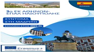 Το 3ο ΕΚ Αθηνών – ΕΠΑΛ Ηλιούπολης, συνεχίζει να αξιοποιεί τις ευρωπαϊκές ευκαιρίες, ως εργαλείο αναβάθμισης των προγραμμάτων σπουδών του, με ένα νέο πρόγραμμα ERASMUS+.