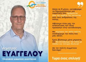 Υψηλότερη αποστολή είναι να υπηρετείς τον Άνθρωπο και τις ανάγκες του. Γι’ αυτό εμείς ακούμε τις προτάσεις, τις αγωνίες, τα προβλήματά σας. Με σύμμαχο τον απλό πολίτη σχεδιάζουμε την πόλη που μας αξίζει.