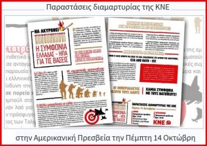 Παραστάσεις διαμαρτυρίας στην αμερικανική πρεσβεία στην Αθήνα και το αμερικανικό προξενείο στην Θεσσαλονίκη, διοργανώνει η ΚΝΕ την Πέμπτη 14 Οκτώβρη, ενάντια στην ελληνοαμερικανική συμφωνία για τις βάσεις.