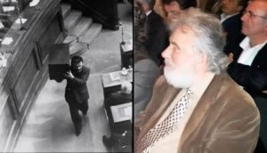 Ο Κίμων Κουλούρης, βουλευτής του ΠΑΣΟΚ, τον αντιλαμβάνεται και τότε τρέχει πίσω του για να πάρει την κάλπη, η οποία θα κατέληγε στα γραφεία της Νέας Δημοκρατίας.