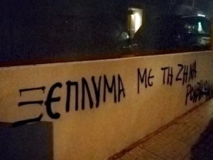 Παρέμβαση με σπρέι έκαναν έξω από το σπίτι της δημοσιογράφου και παρουσιάστριας της εκπομπής «Αλήθειες με τη Ζήνα», Ζήνας Κουτσελίνη, στην Εκάλη μέλη του φεμινιστικού τομέα της συλλογικότητας «Ρουβίκωνας», όπως και αναφέρεται στη σχετική τους ανακοίνωση.