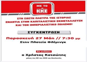 Θα μιλήσει ο Χρήστος Κατσώτης (μέλος της ΚΕ και βουλευτής του ΚΚΕ)