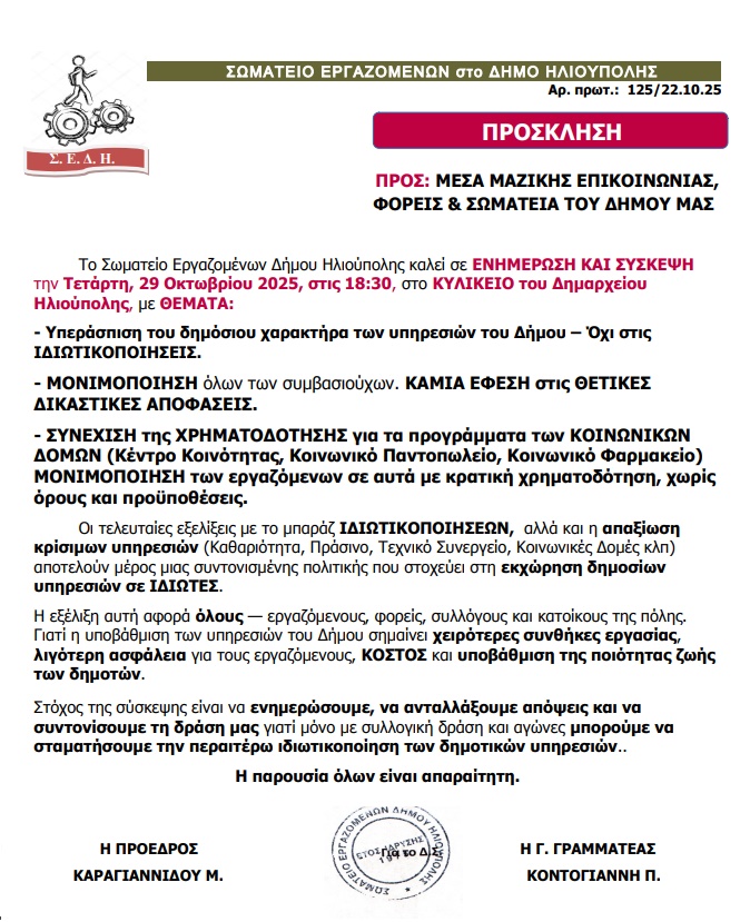 ΣΩΜΑΤΕΙΟ ΕΡΓΑΖΟΜΕΝΩΝ στο ΔΗΜΟ ΗΛΙΟΥΠΟΛΗΣ