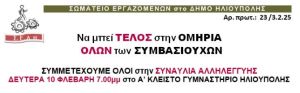 ΔΕΥΤΕΡΑ 10 ΦΛΕΒΑΡΗ 7.00 μ.μ. στο Α’ ΚΛΕΙΣΤΟ ΓΥΜΝΑΣΤΗΡΙΟ ΗΛΙΟΥΠΟΛΗΣ