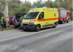 Στο σημείο έσπευσαν 9 πυροσβέστες με τρία οχήματα οι οποίοι απεγκλώβισαν την γυναίκα, που διακομίσθηκε στο νοσοκομείο με ασθενοφόρο.
