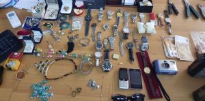 Στην κατοχή του βρέθηκε μαξιλαροθήκη, γεμάτη με κοσμήματα-τιμαλφή που είχαν κλέψει από το σπίτι.Σε έρευνα στο σπίτι του, βρέθηκαν και κατασχέθηκαν πλήθος κοσμημάτων, ρολογιών και τσαντών, ηλεκτρονικές συσκευές και το χρηματικό ποσό των -600- ευρώ.