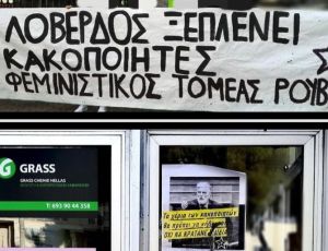 - Ο Φεμινιστικός Τομέας της αναρχικής συλλογικότητας πραγματοποίησε παρέμβαση στο πολιτικό γραφείο του Γιάννη Λοβέρδου, λίγες ημέρες μετά τις δηλώσεις του «γαλάζιου» βουλευτή με αφορμή το νομοσχέδιο για τη συνεπιμέλεια.