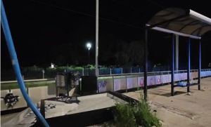 Παρά ταύτα, το μεγάλο όχημα γκρέμισε τη στάση, προκαλώντας φθορές και στο οδόστρωμα.