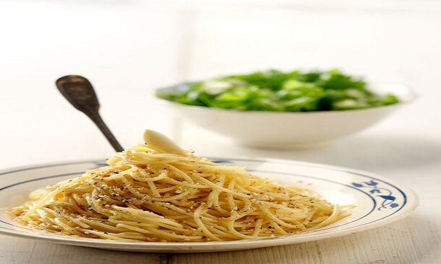 - Βάζουμε στο τηγανάκι το υπόλοιπο λάδι να κάψει και τότε ρίχνουμε το σκόρδο, ανακατεύουμε γρήγορα να μην καεί, αλλά μόνο να πάρει ωραίο ξανθό χρώμα, και το αδειάζουμε στα μακαρόνια.
