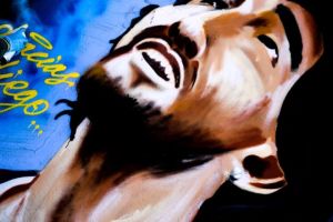 Συγκεκριμένα ένας street art ζωγράφισε το πρόσωπο του Ντιεγκίτο την ώρα που κάνει… κεφαλιά.