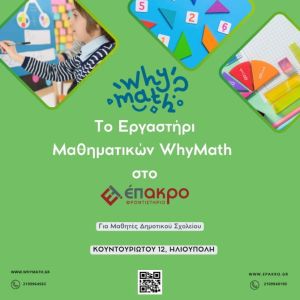 Είμαστε χαρούμενοι να ανακοινώσουμε ότι πλέον τα εργαστήρια WhyMath θα πραγματοποιούνται και σε φυσικό χώρο, στο Έπακρο Φροντιστήριο, στην Ηλιούπολη.