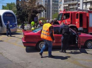 Συγκεκριμένα, το τροχαίο έγινε στην οδό Ελευθερίου Βενιζέλου, όταν ένα αυτοκίνητο συγκρούστηκε με το τραμ.