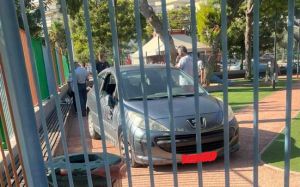 Σύμφωνα με πληροφορίες, η οδηγός έχασε τον έλεγχο την ώρα που πήγαινε να στρίψει στην πλατεία Ζησιμοπούλου, με αποτέλεσμα να σπάσει την εξωτερική περίφραξη και να καταλήξει μέσα στον χώρο.