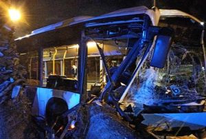 Σύμφωνα με πληροφορίες, ο οδηγός του λεωφορείου έχασε τον έλεγχο του οχήματος, με αποτέλεσμα να πέσει πάνω σε φοίνικα.