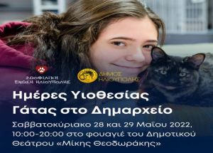 Εκδήλωση ανάδοχου κηδεμόνα πραγματοποιεί η Ζωοφιλική Ένωση Ηλιούπολης με την υποστήριξη του Δήμου Ηλιούπολης, το Σαββατοκύριακο 28 και 29 Μαΐου 2022, 10:00 π.μ. - 08:00 μ.μ. στο φουαγιέ του Δημοτικού Θεάτρου «Μίκης Θεοδωράκης», στη συμβολή των οδών Σοφοκλή Βενιζέλου 112 και Κουντουριώτου, με είσοδο από Κουντουριώτου.
